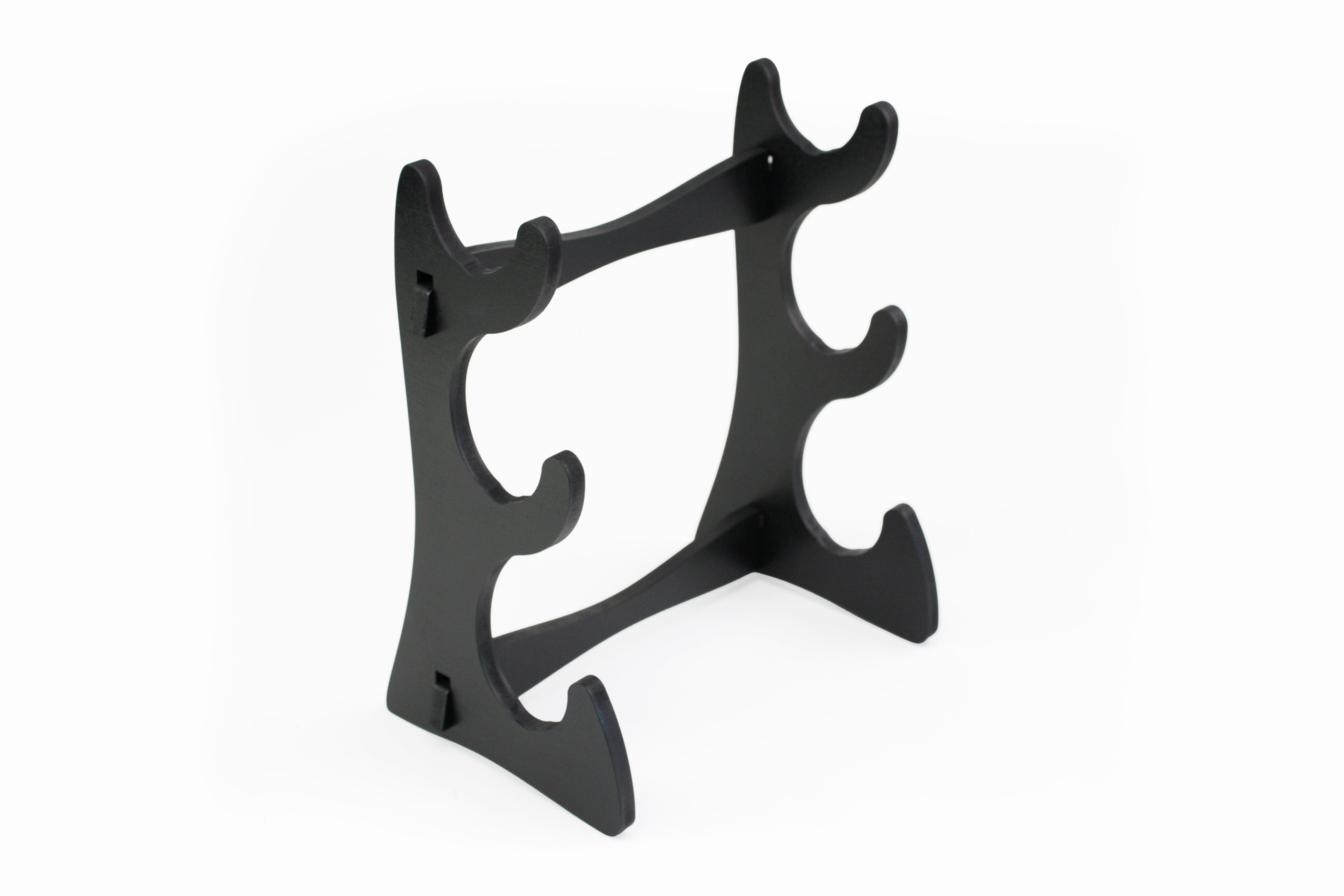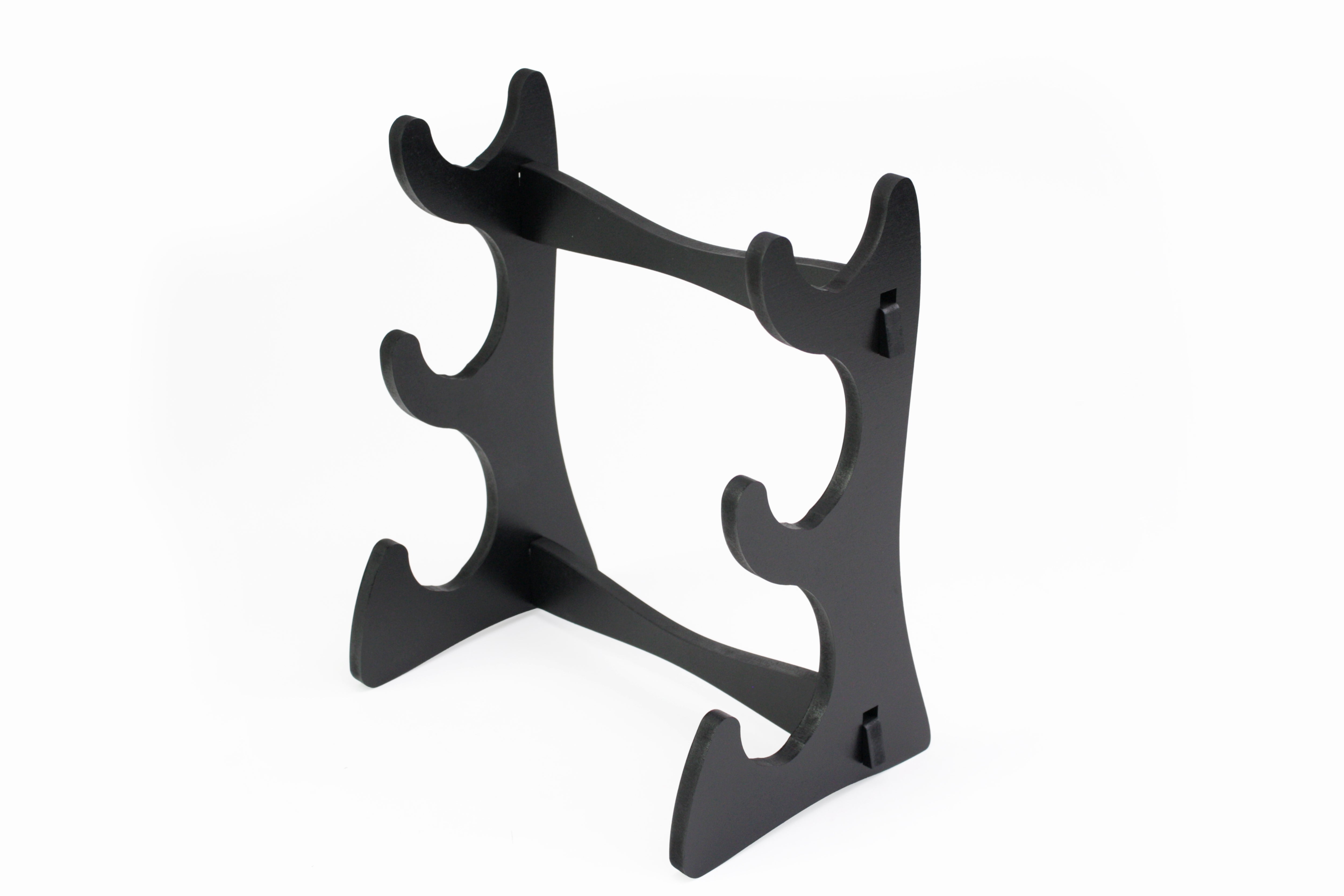 This wooden flute stand is handcrafted from wood that is finished in the water-based lacquer color of Obsidian Black.