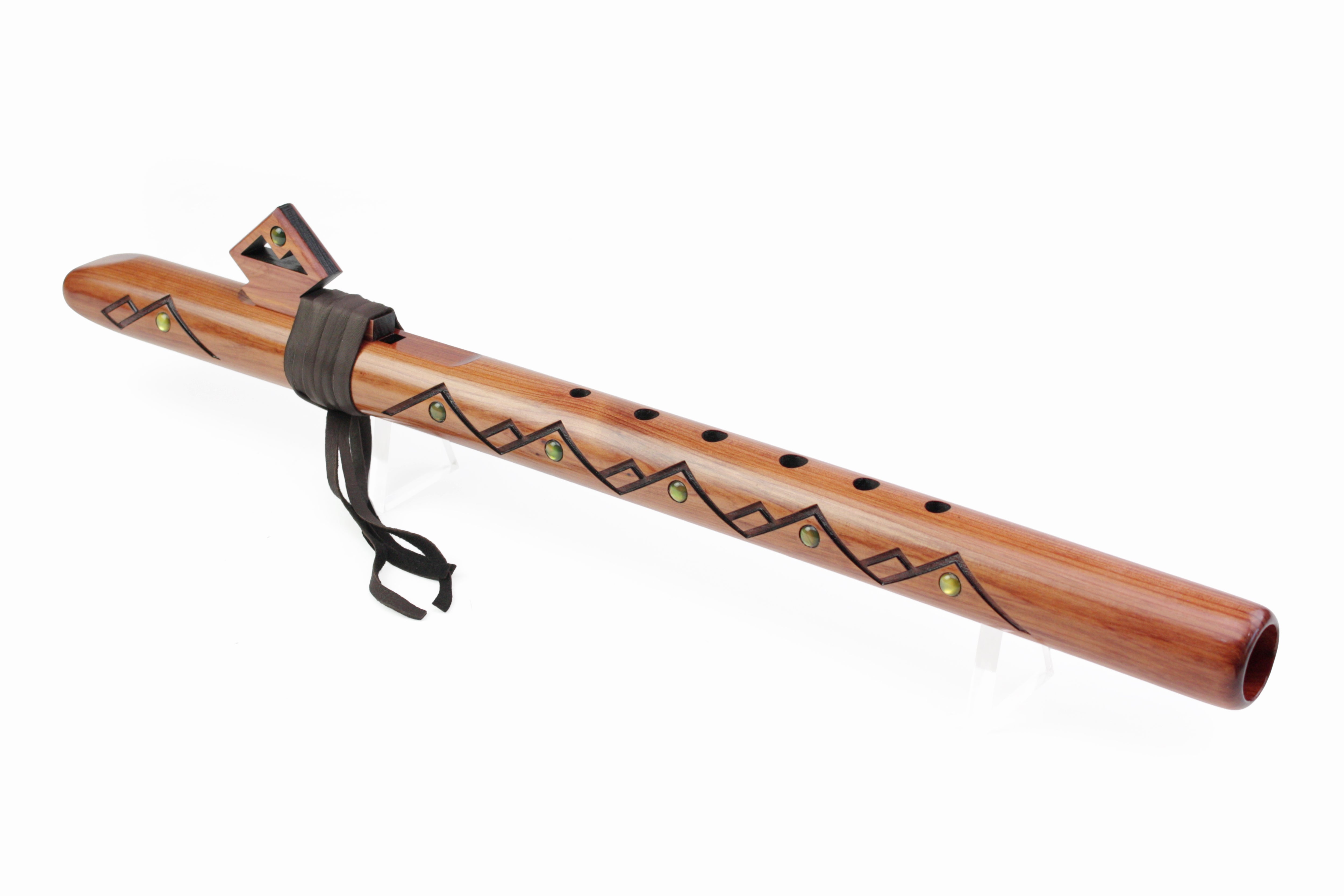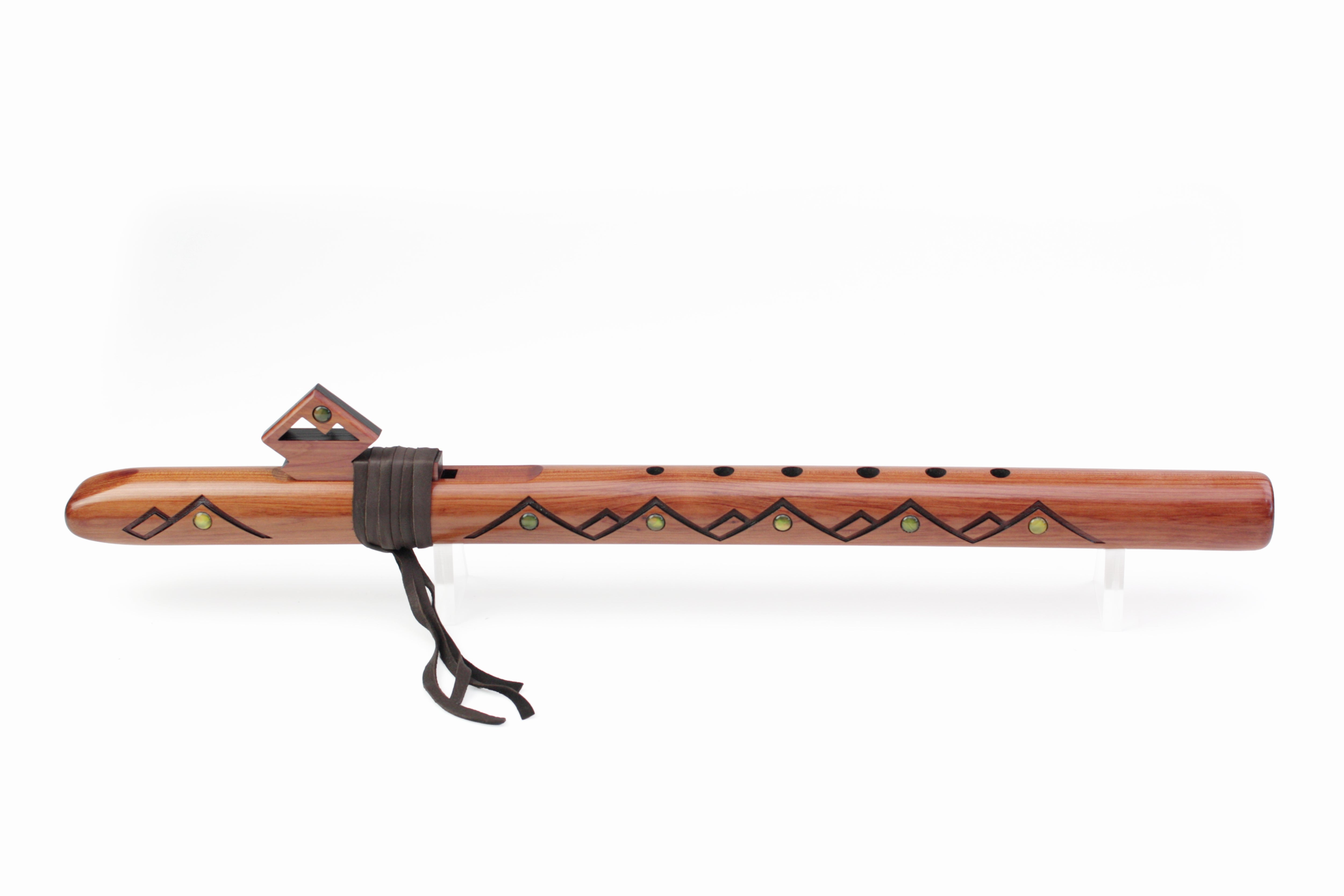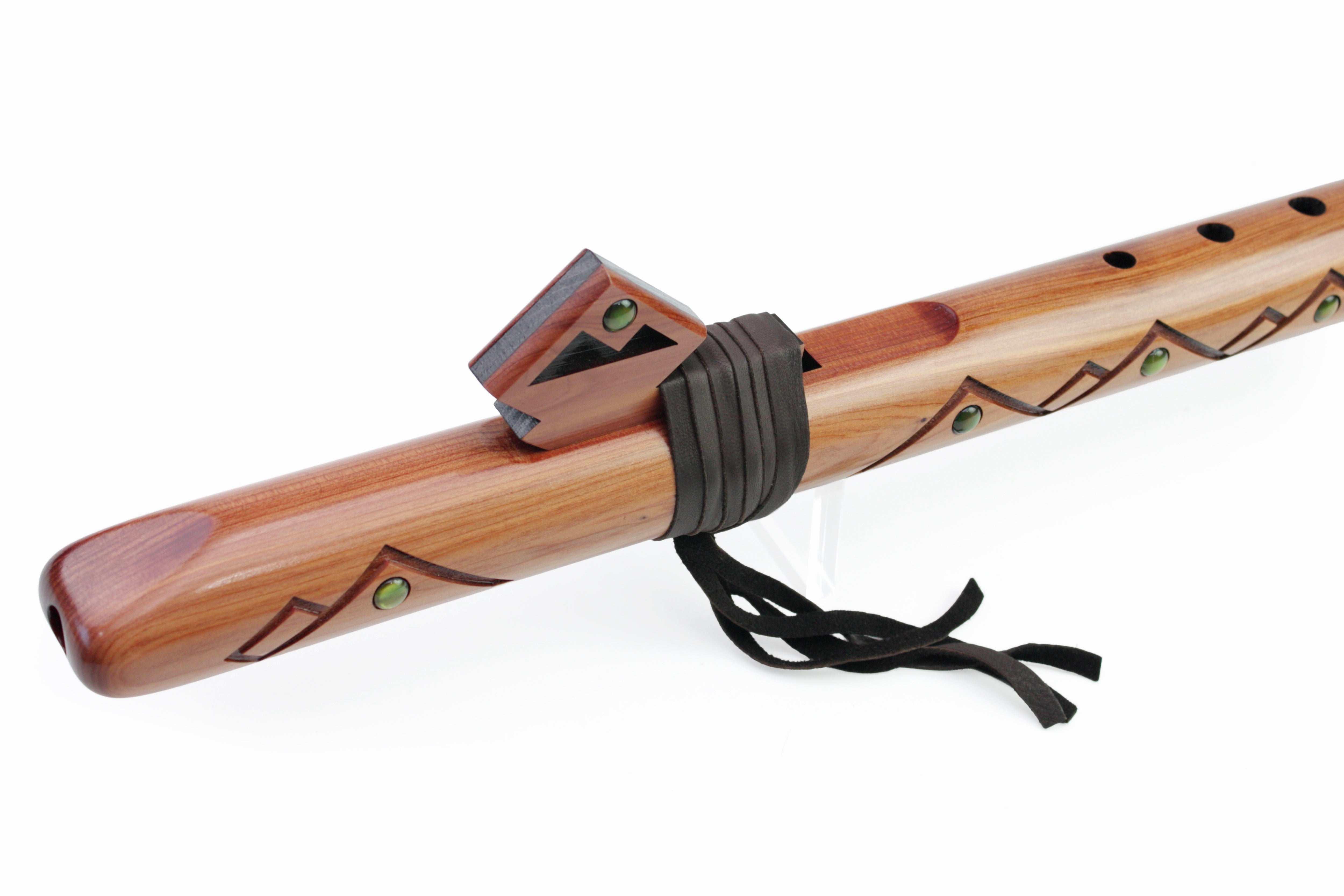 Our Signature Series Mountain Flute in the key of 'G' minor (440 Hz) is handcrafted from a single, solid piece of Aromatic Cedar wood with decorative Black Lip Shell inlaid cabochons. Aromatic Cedar is known as an exception tonal wood for musical instruments because of its ability to offer warm, and balanced sound quality.