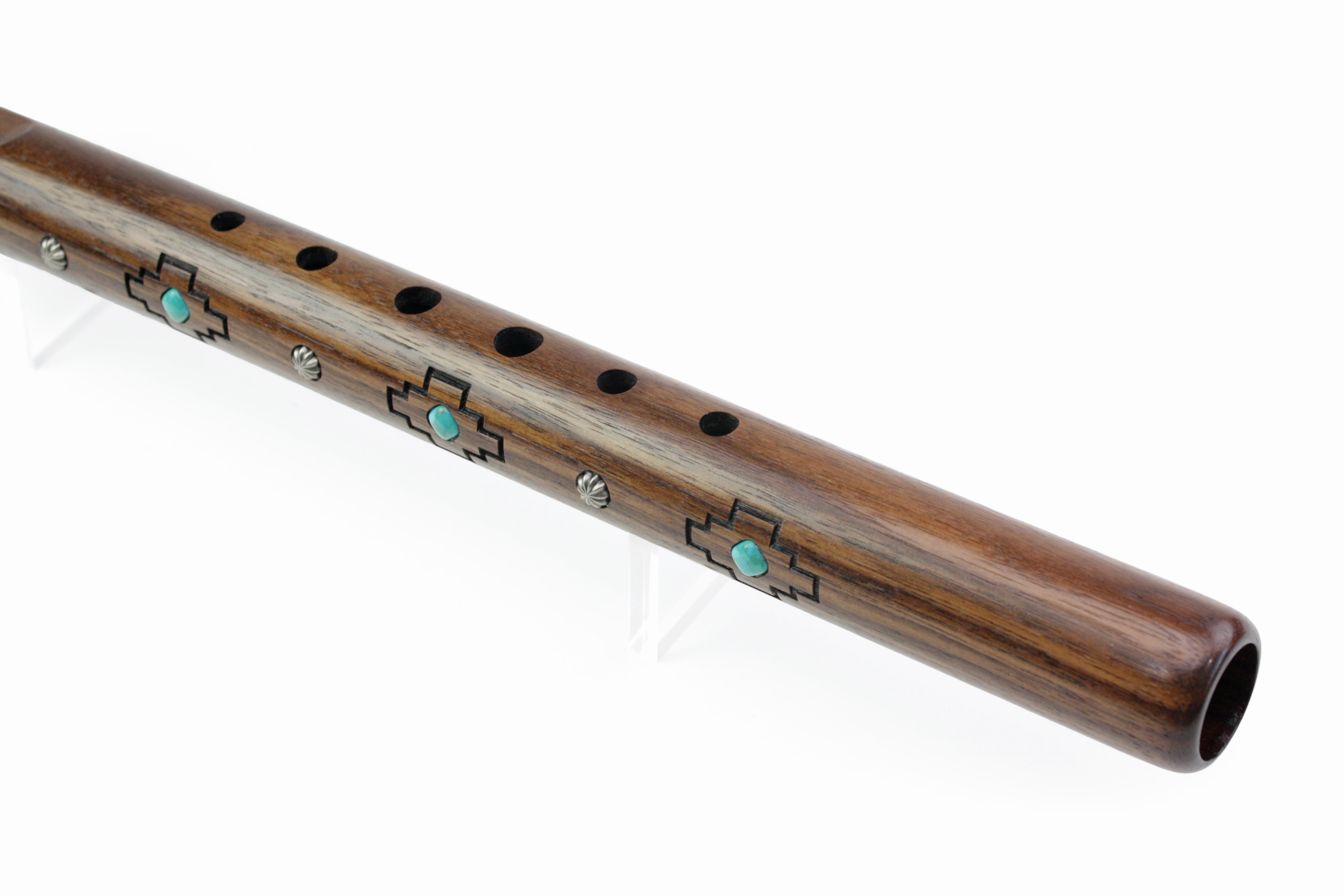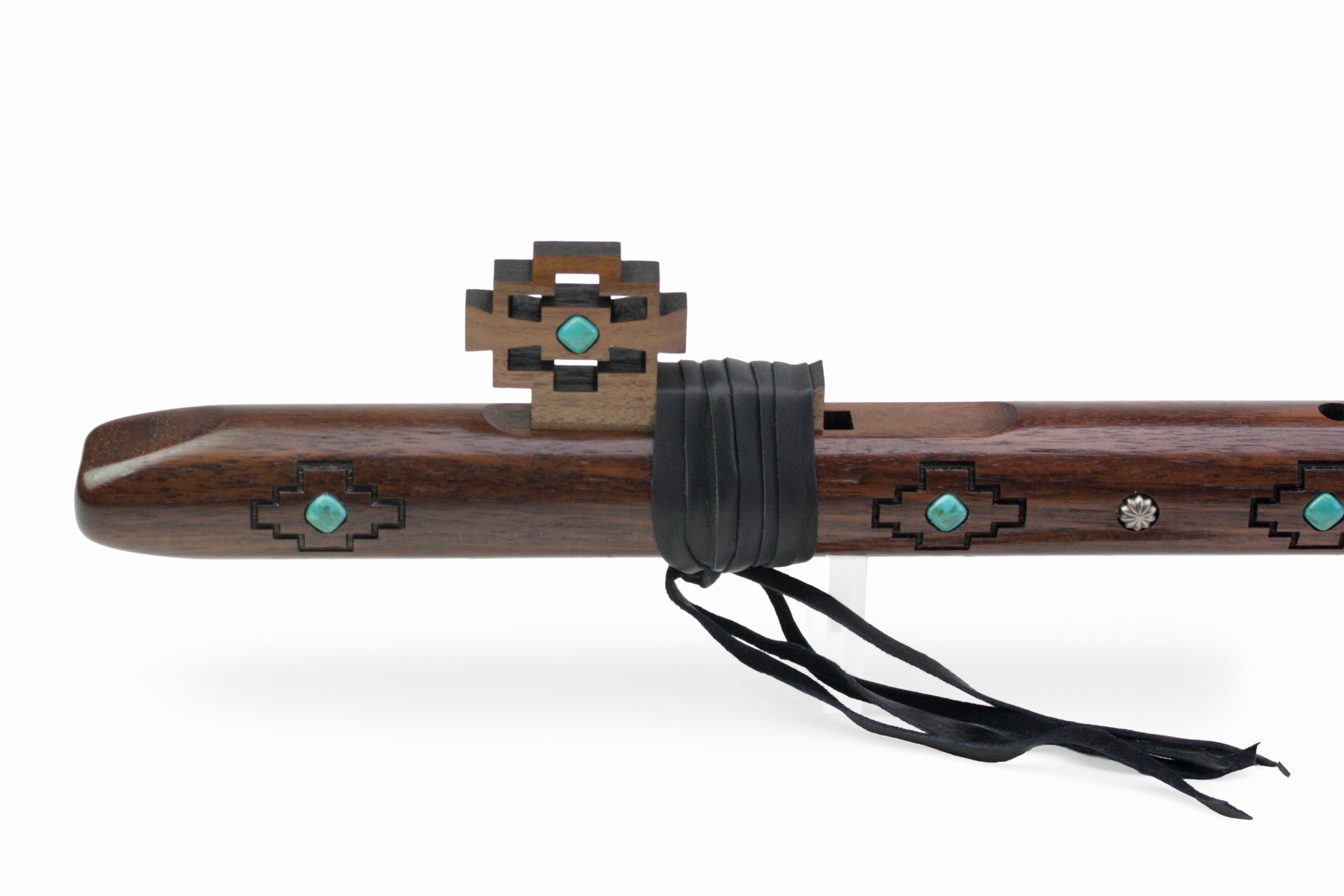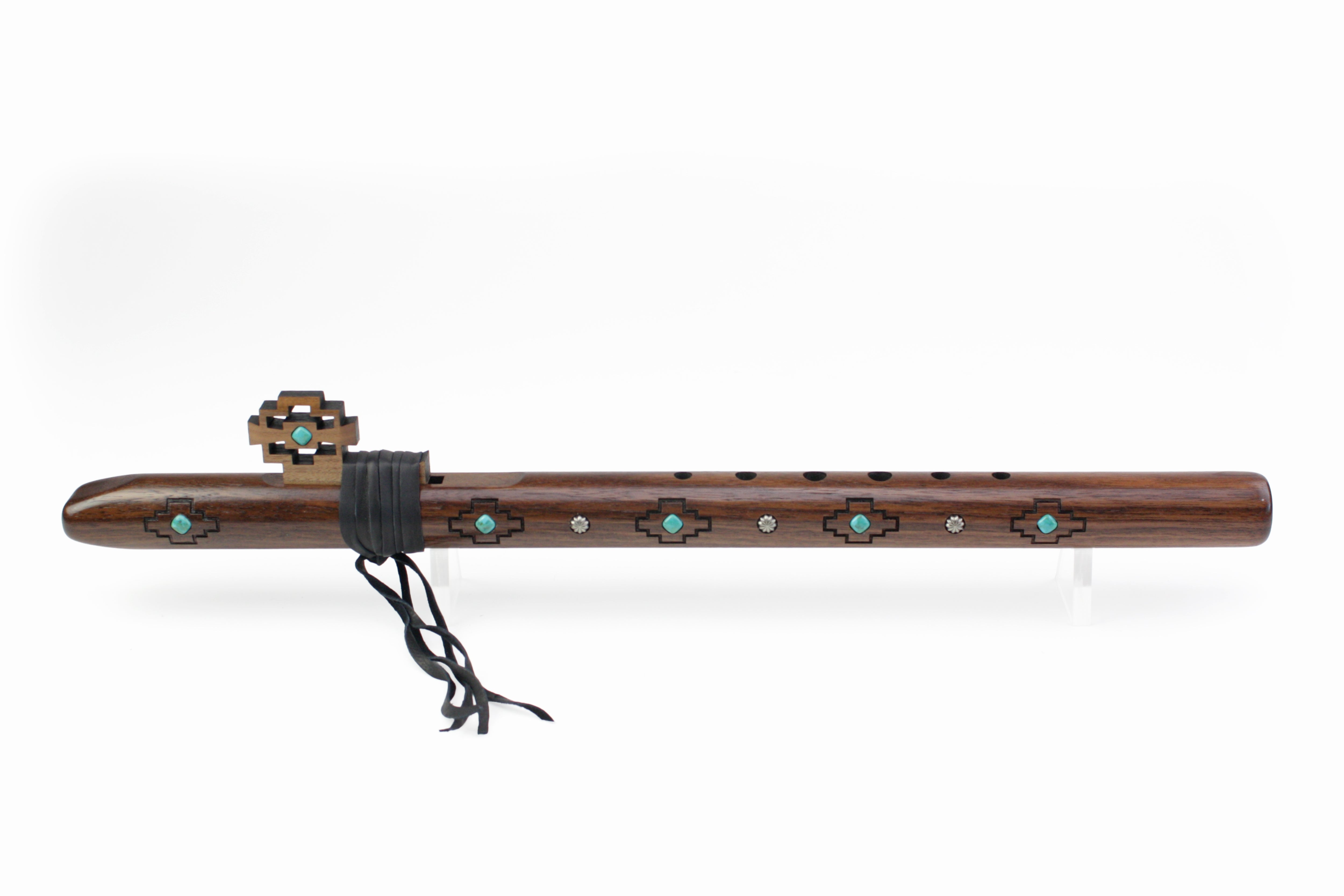 The Silverado flute's geometric patterns and Sterling Silver and Turquoise decorative inlay convey a modern and tribal design that is distinctly inspired by our American southwest home.