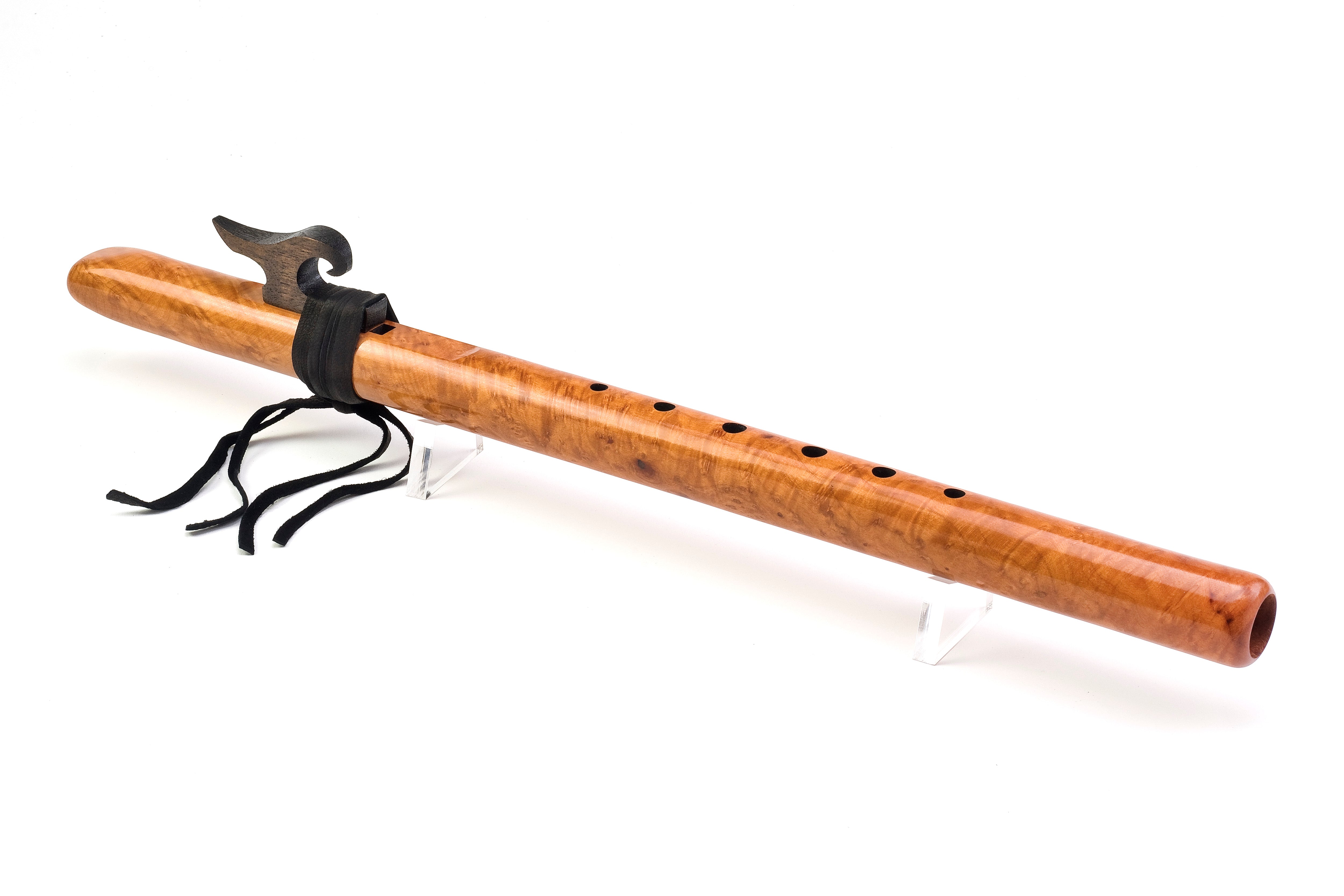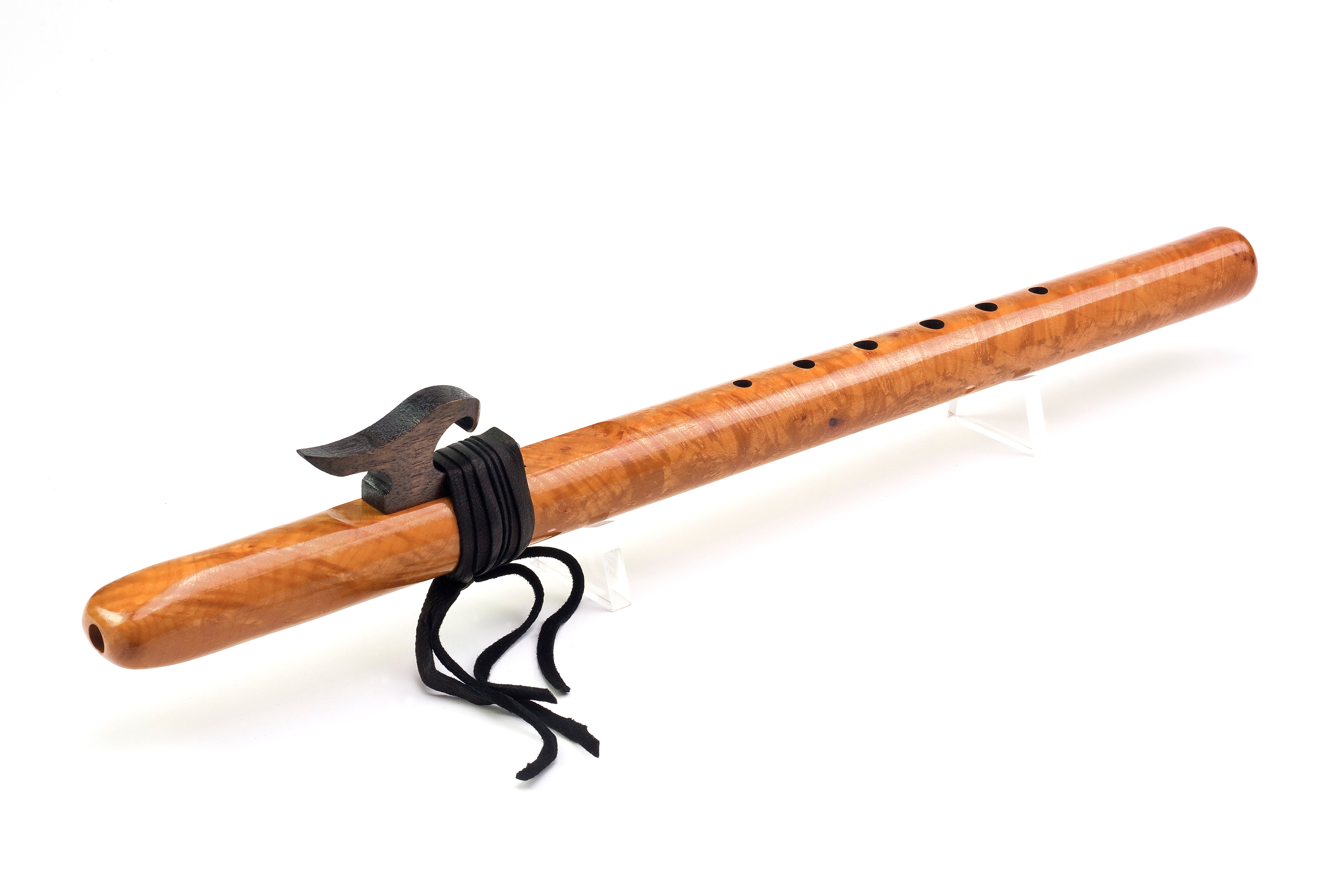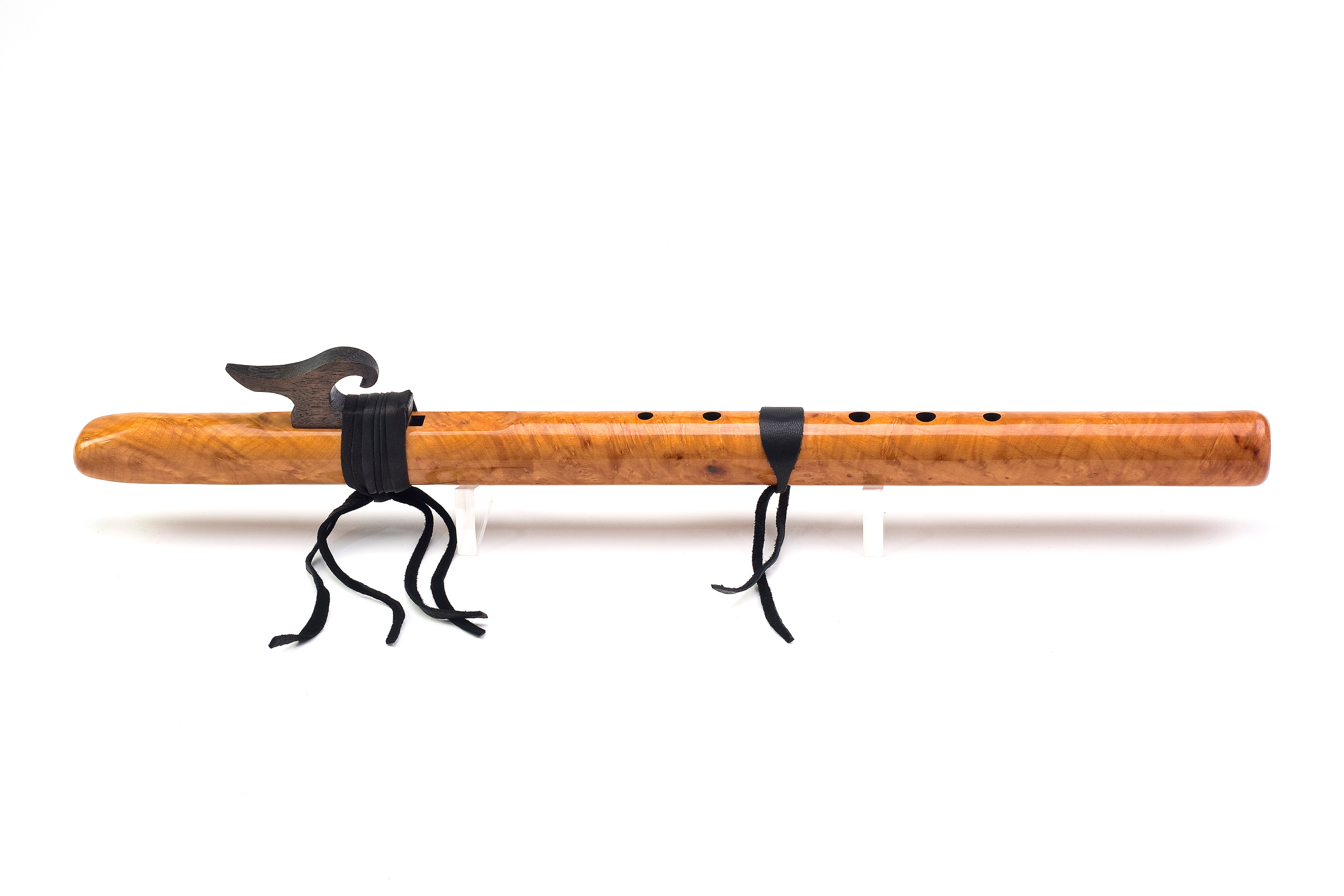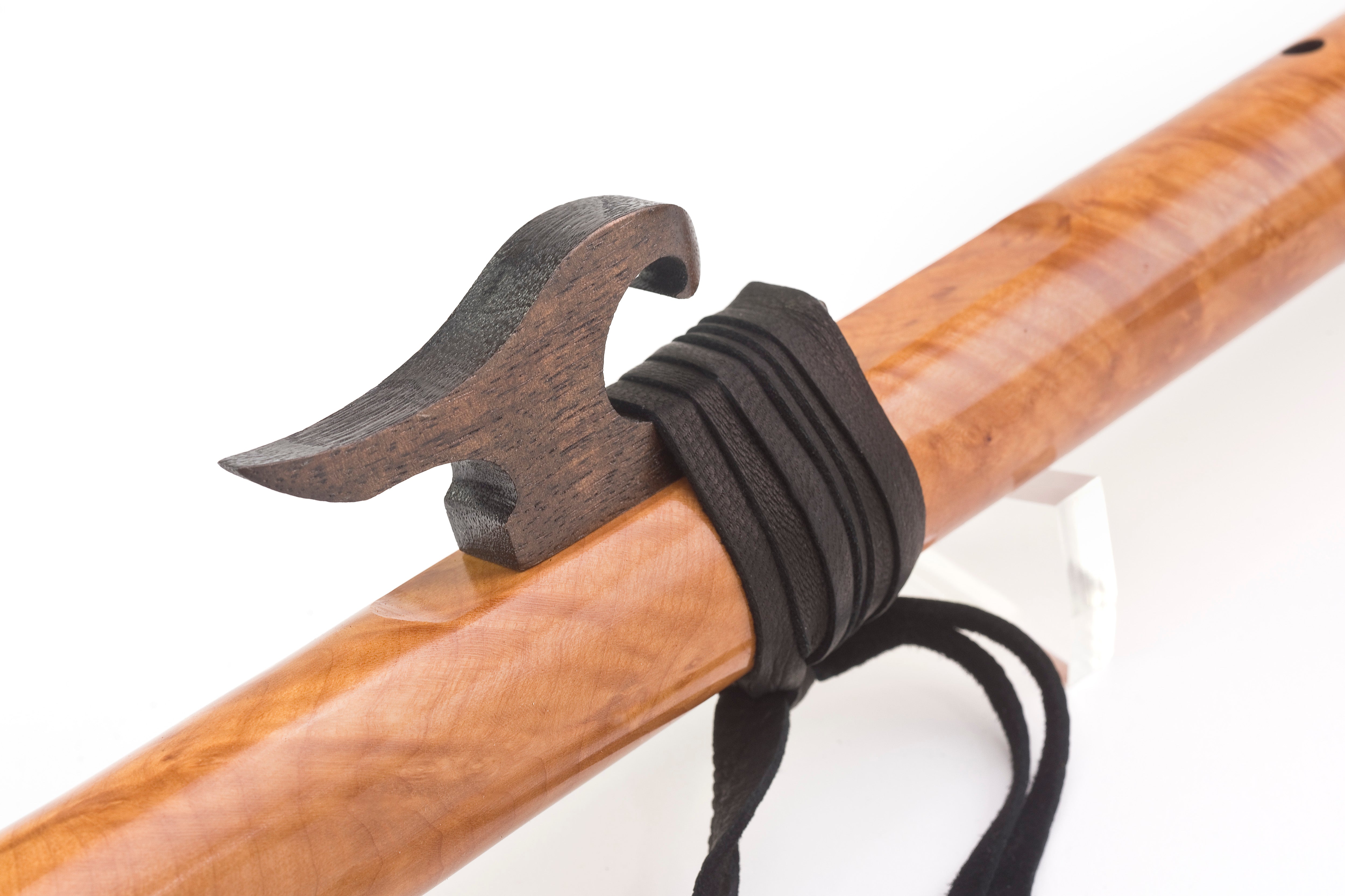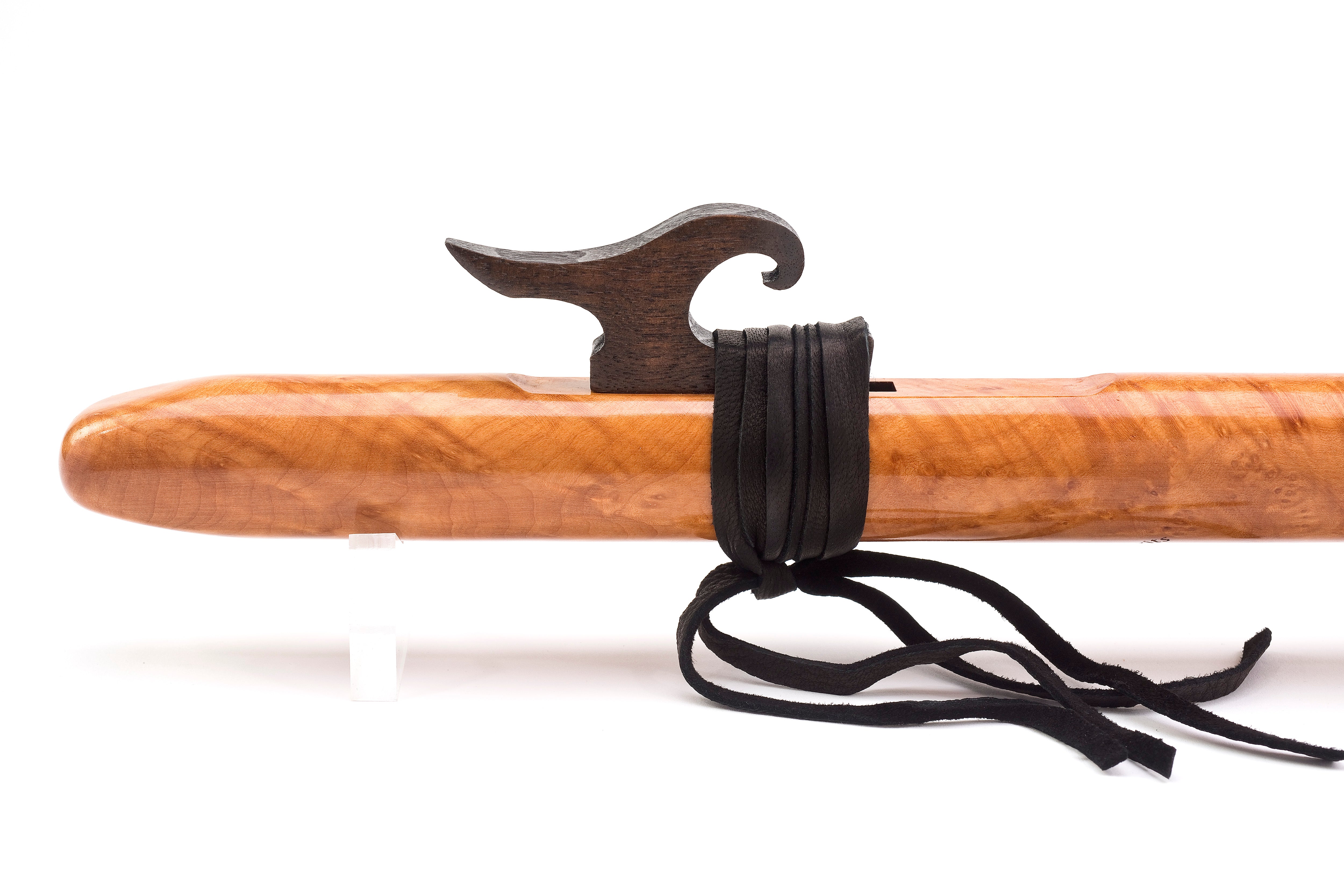 Our Red Tail Hawk flute in the key of "G" minor (440 Hz) has a soothing, melodic musical voice. It has a deeper sound tone than our Sparrow Hawk 'A' flute but it remains an ideal choice for beginners just learning because it is easy to play. Because of its intricate grain patterns and lovely colors, Madrone Burl is a wood that has special visual character.